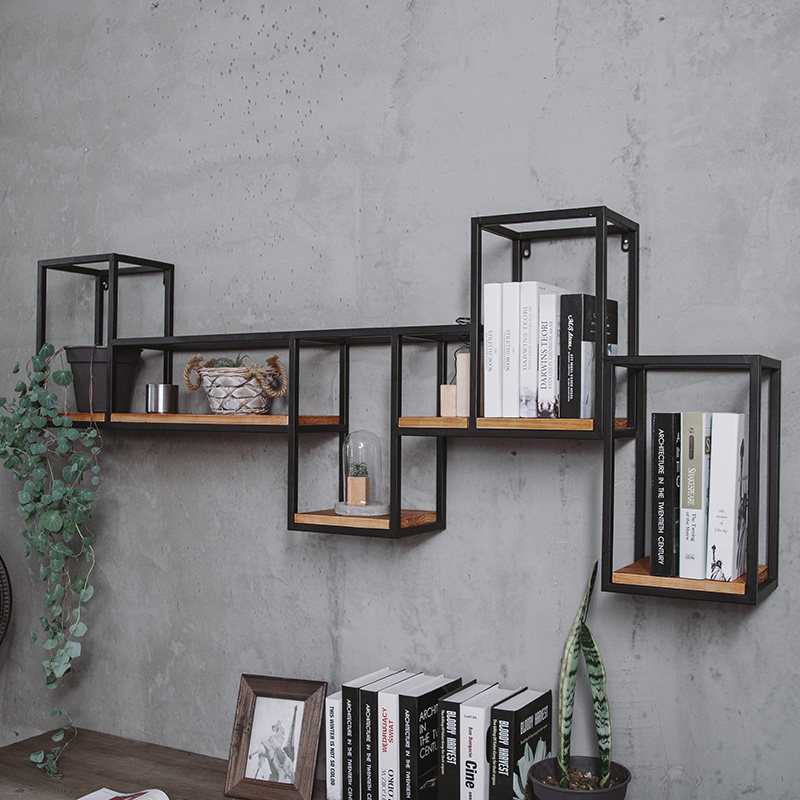 Iron wine rack wall hanging bookshelf home dining room red wine rack decoration wine cabinet wall hanging background wall wall rack