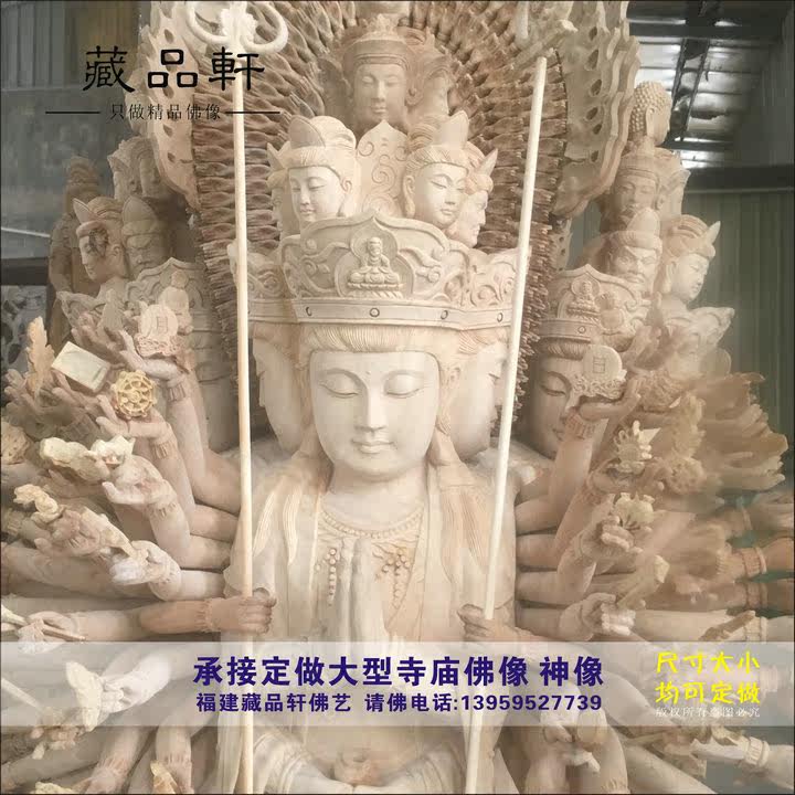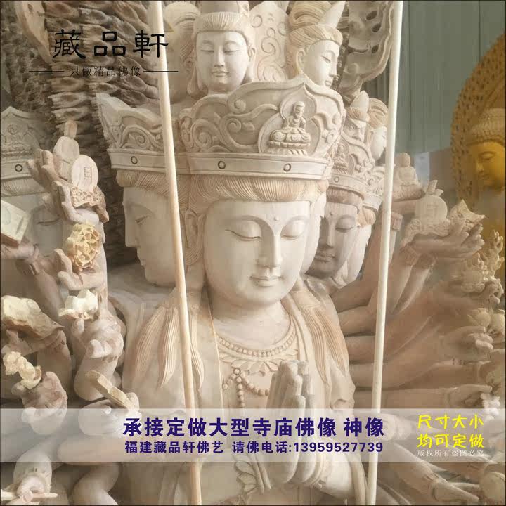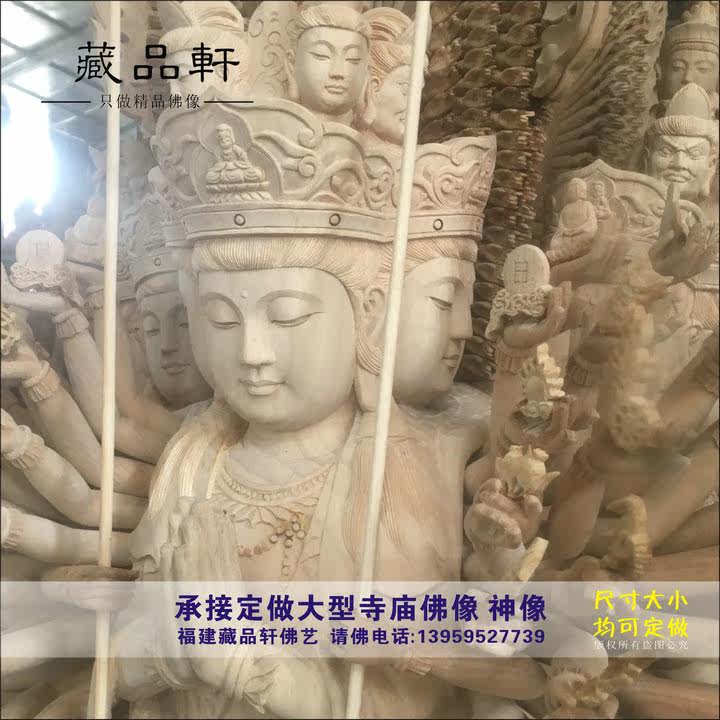 Wood carving four-sided thousand-hand Guanyin Bodhisattva thousand-hand and thousand-eye Guanyin Buddha statue Home Buddha Hall dedicated Buddha ornaments