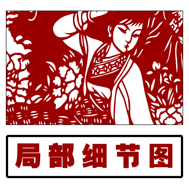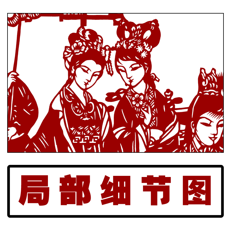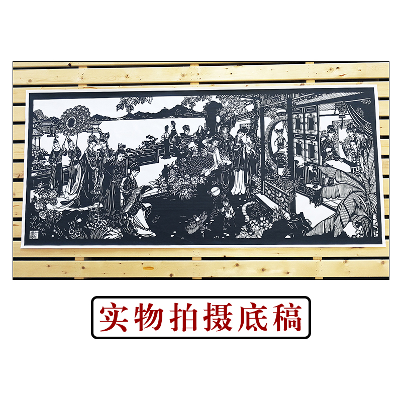 JP25 Red Building Dream figures Cut Paper Bottom Manuscript Drawing Large Paper Sculpture Pattern Grand View Gardena black and white print draft
