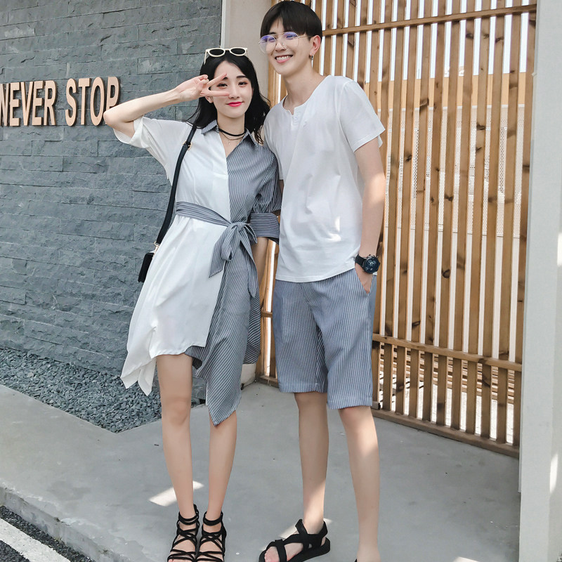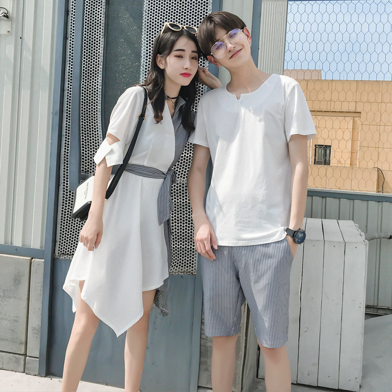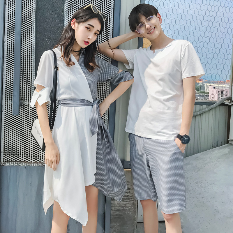 Not the same couple summer 2021 new suit short-sleeved T-shirt men's and women's dresses Korean temperament clothes