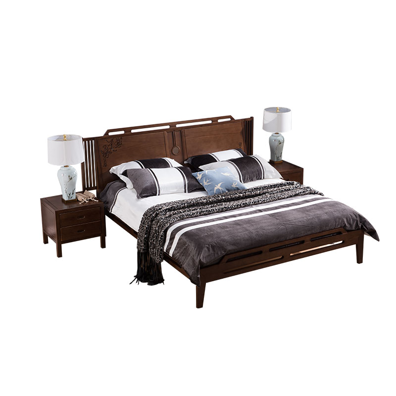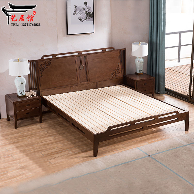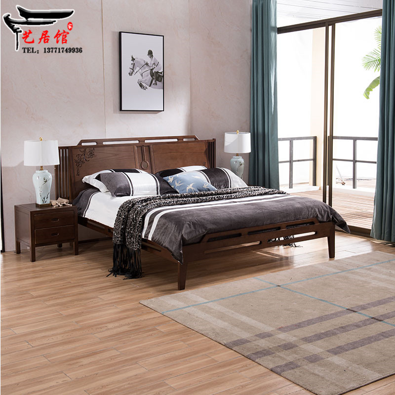 New Chinese Zen solid wood bed hotel club model room double bed 1 8m wedding bed bedroom furniture customization - Taobao