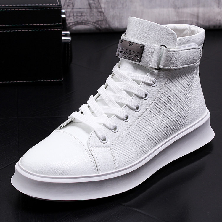 2021 new tide cards high cylinder small white shoes men 100 hitch casual thick bottom white board shoes Korean version trendy breathable leather shoes