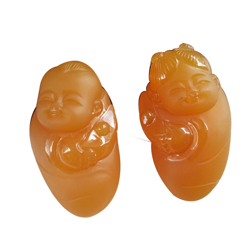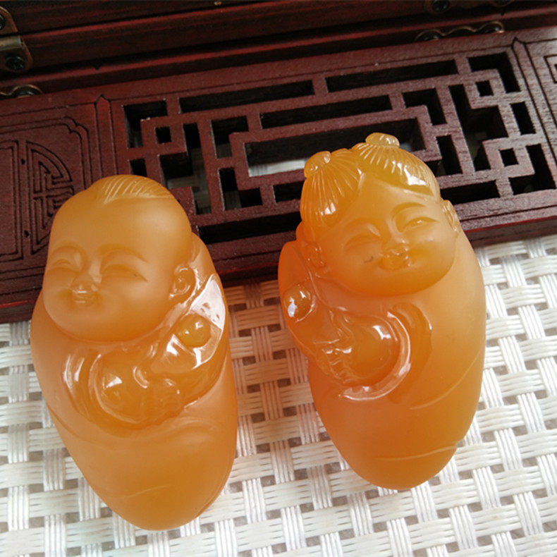 Myanmar's Yellow Longyu jade A stock old color overdraft gold Tong jade Girl pendant pendant Teng flush with Jade Jade