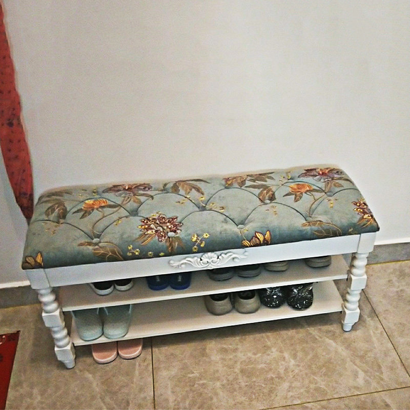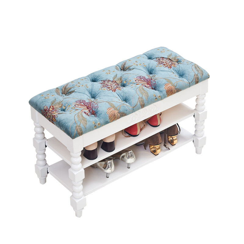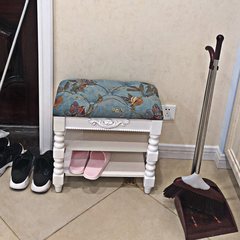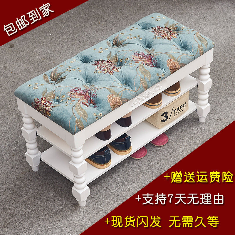 Fabric shoe changing stool living room small sofa stool home wearing shoe stool American all solid wood shoe changing cabinet European white shoe rack