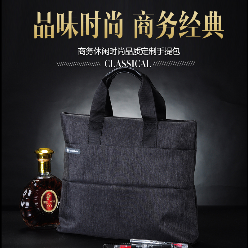 Zipper bag A4 information bag canvas briefcase file bag business portable men's and women's office bag conference bag customization