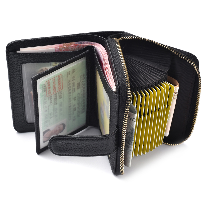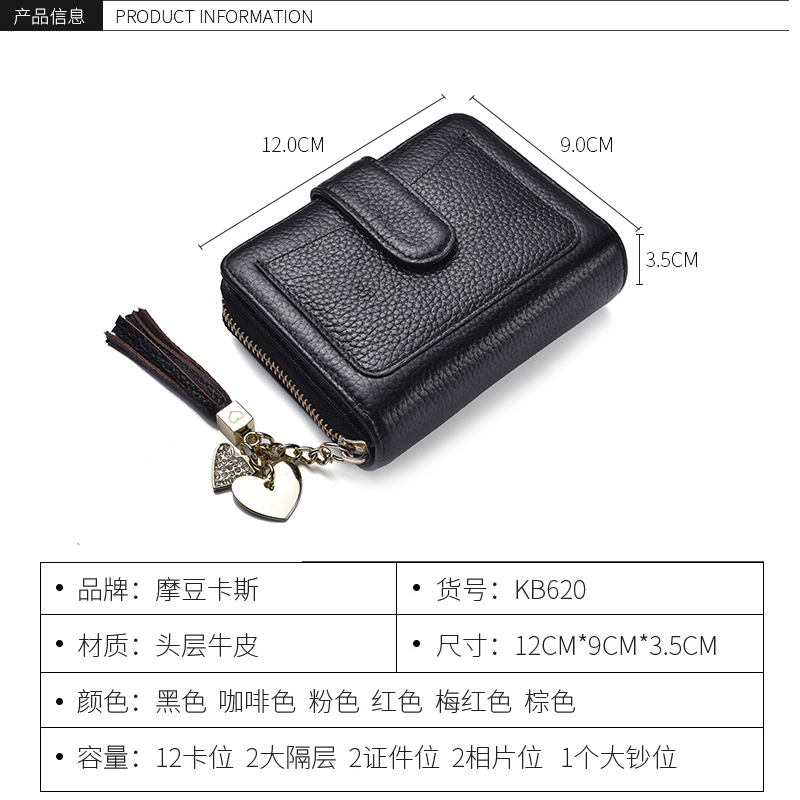 Genuine Leather Female small wallet Short Bull Leather Multi-Position Laced With Zero Money Card Bag Integrated Bag Money Clip Tide Leather Wallet