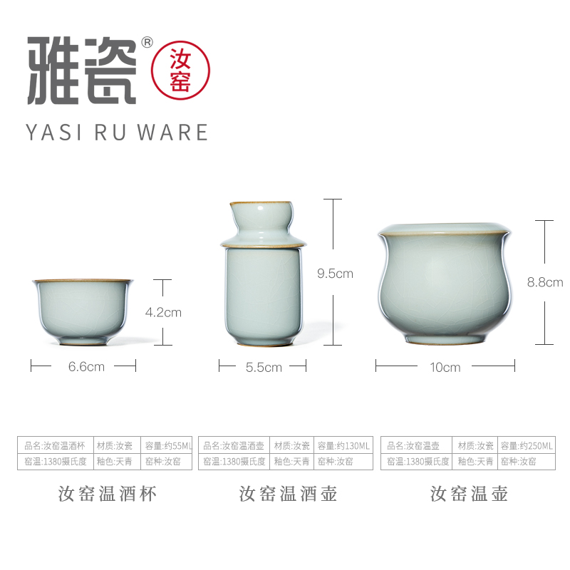Ya Porcelain Ru Kiln Rice Wine Warmer Warmer Wine Warmer White Wine Hot Wine Pot Warmer Wine Pot Household Chinese Ceramic Wine Set