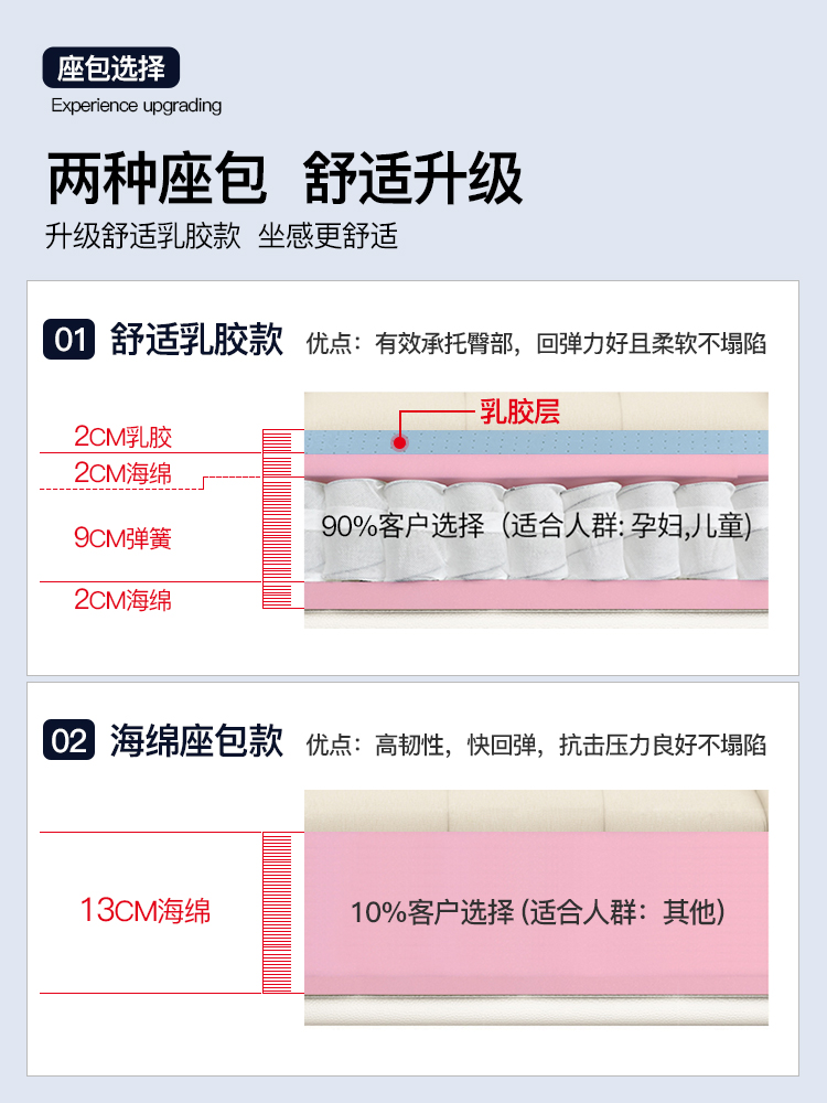 (Cotton and linen fabric) Pine frame Sponge seat bag (three-proof disposable technical cloth) Pine frame Latex spring bag seat bag (Cotton and linen fabric) Pine frame Latex spring bag seat bag (three-proof