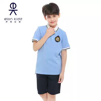 Eaton Gide primary and secondary school school uniform boys and girls white navy blue strip threaded collar light blue short-sleeved POLO shirt