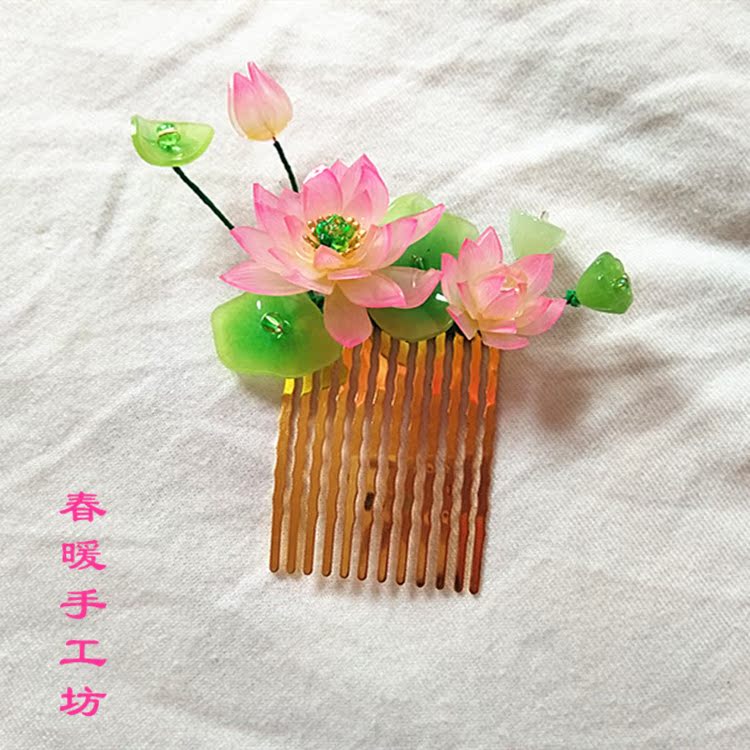 Lotus Comb Encounters with Hairpins Workshop Original Design Hot-Shrink Lotus Inserts Comb Side Comb Hanfu Qipao Hair Accessories Chinese Wind Hair Inserts
