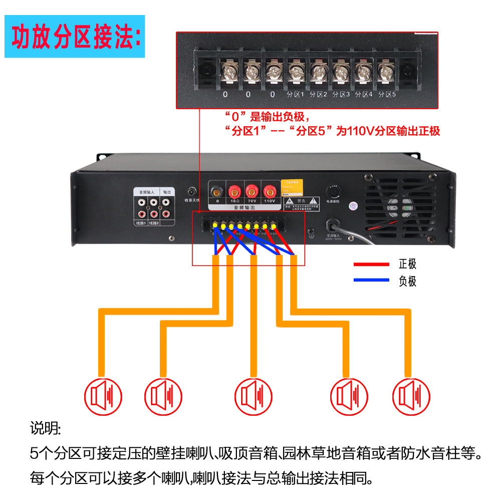 Background music USB Bluetooth amplifier waterproof sound column ceiling speaker lawn audio constant pressure amplifier 120-700W