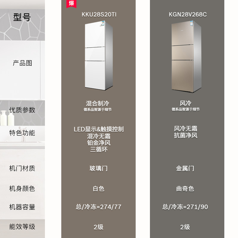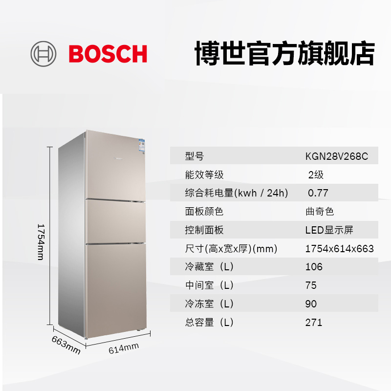 Bosch Bosch BCD-271W(KGN28V268C) Three-door Air-Cooled Frost-Free Household Fresh-keeping Refrigerator
