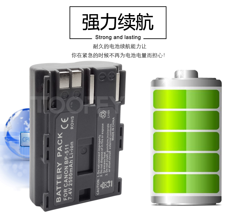 2 Electricity for Canon BP-511 Battery EOS40D 5D 50D 300D 20D BP511A SLR Camera