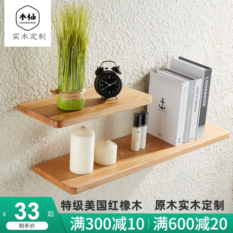 Red oak wood wall shelf Lined Plate Partition Living Room Bookshelf Wall Wall-mounted Wood Plate Solid Wood Customized Table Top Plate