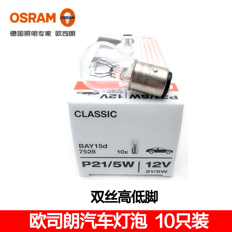 Osram 7528(12V double wire high and low feet) P21 5W 10pcs