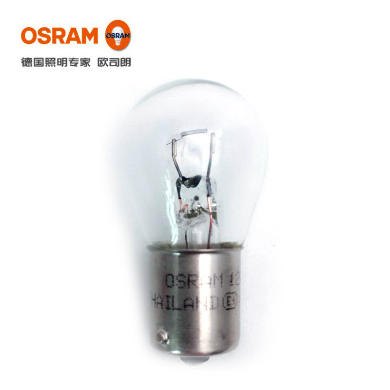 Osram brake light bulb car 12V monofilament flat angle P21W double wire high and low feet P21 5W small light 24V truck
