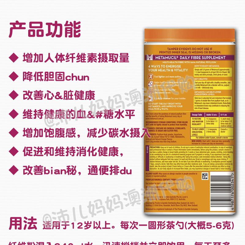 Australia direct mail metamucil Medashi fruit and vegetable prebiotic intestinal healthy satiety dietary fiber powder