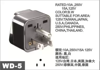 Full copper American to national standard power converter plug WD-5 USA Mexico Canada Japan high power