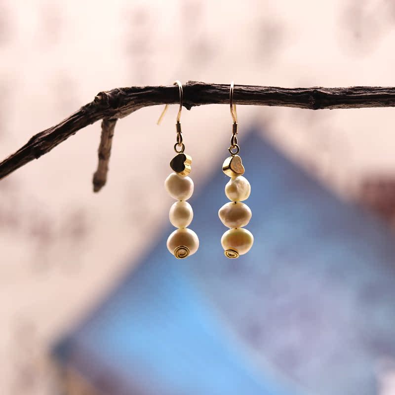 Baroque freshwater pearl ear green color simple earrings small work casual earrings all-match 925 silver hook