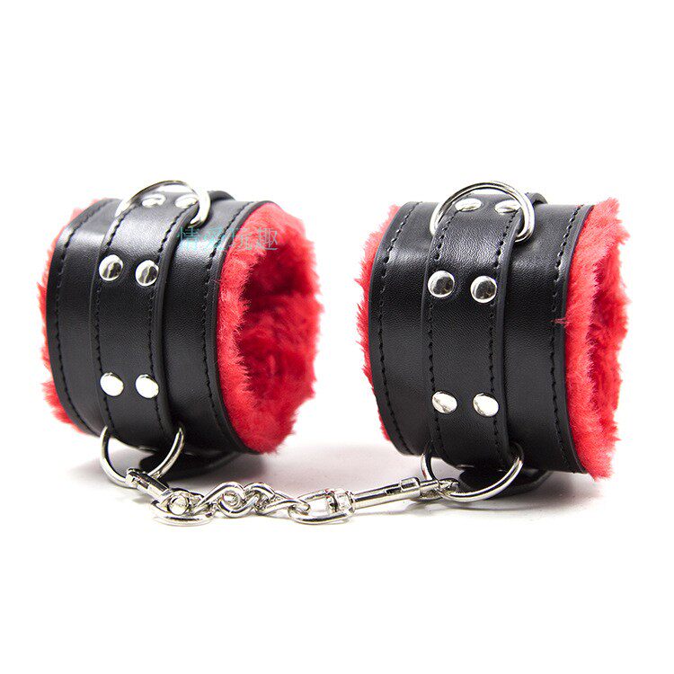 SM alternative combination set Black and red plush 8-piece fun bondage toy hands, feet, handcuffs, whips, blindfolds, mouth balls
