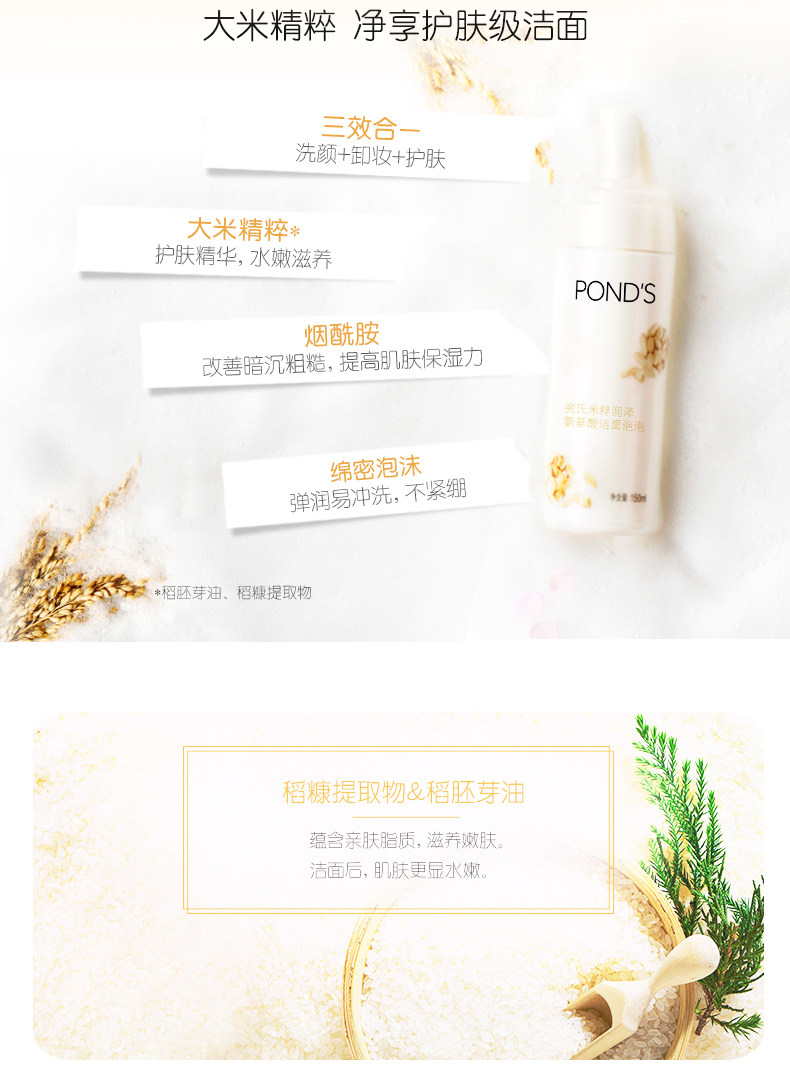 Ponds Pond's Rice Moisturizing Amino Acid Bubble Cleansing Mousse Foam Cleanser Cleansing Makeup Remover 2-in-1