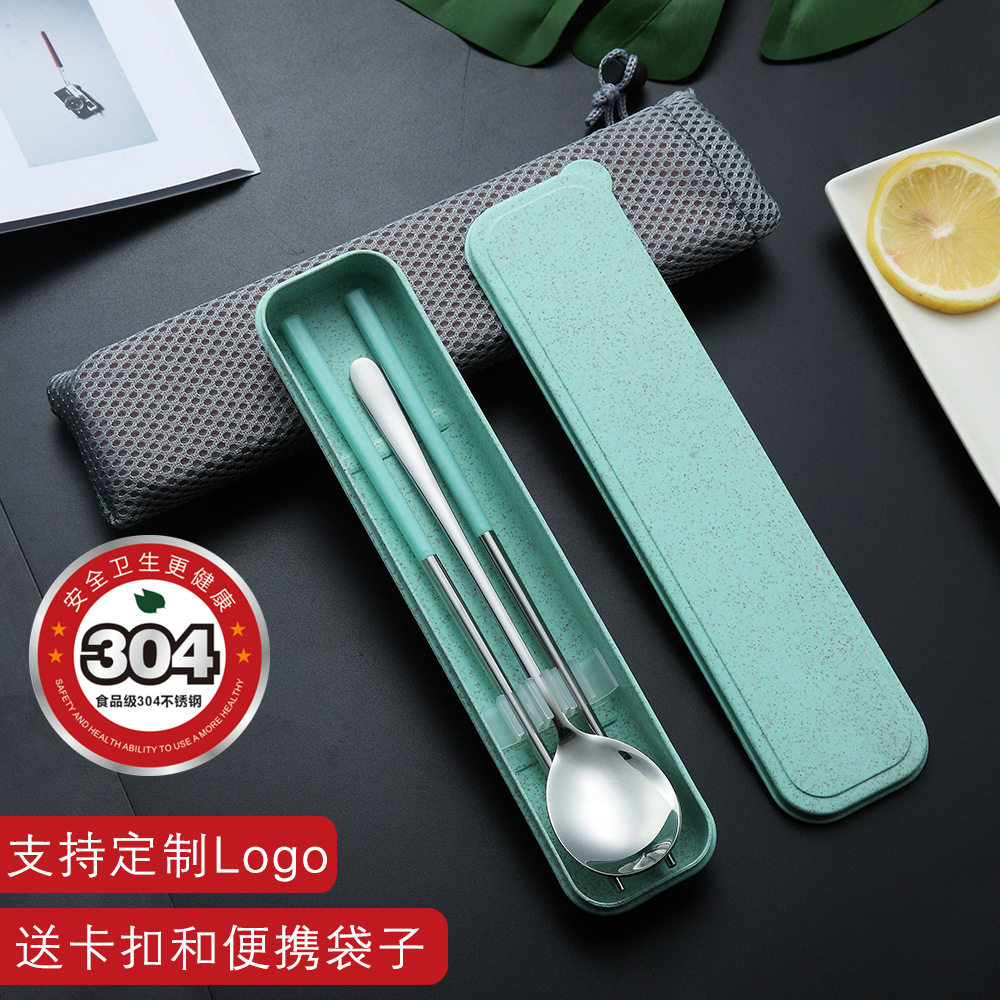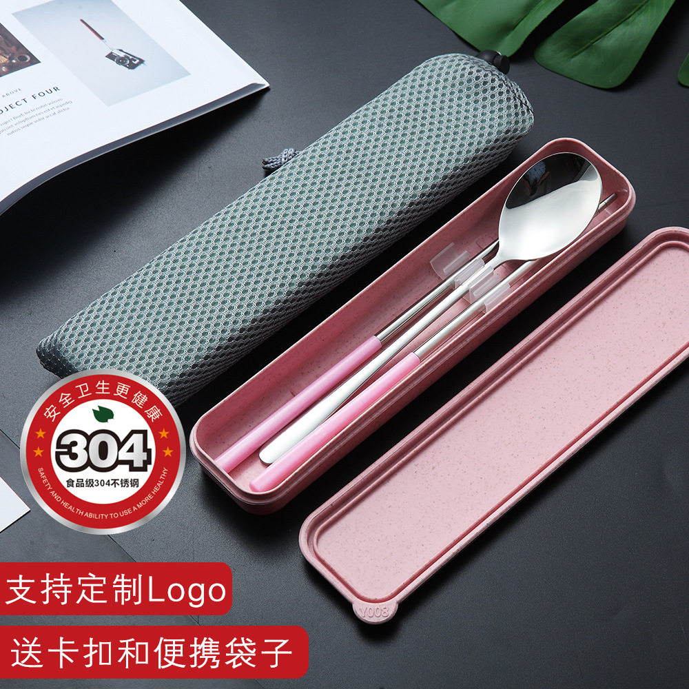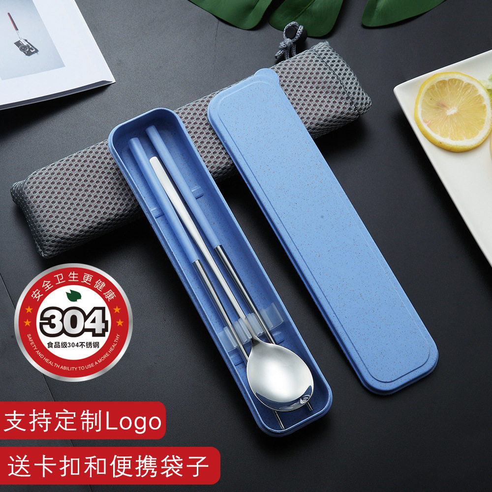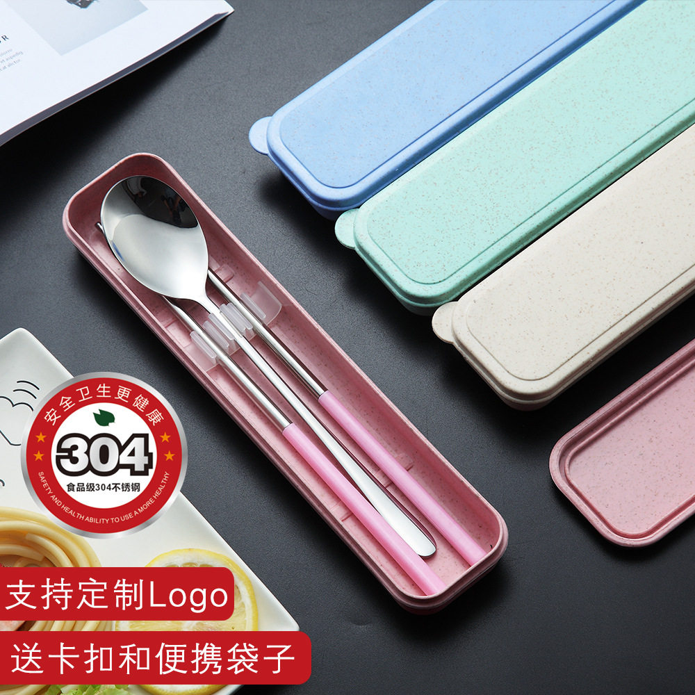 Stainless steel portable cutlery 2-piece Korean spoon chopsticks Wheat promotional gift Student travel set giveaway