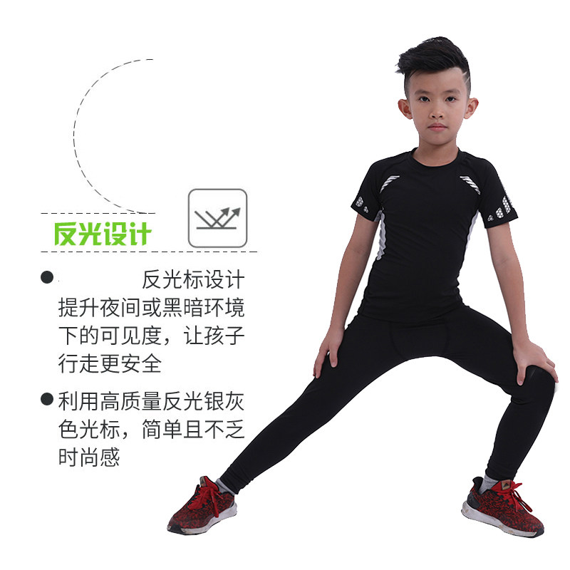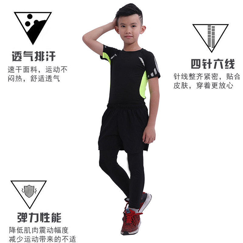 Children Sports Short Sleeves Tight Fit Four Sets Fitness Clothing Elastic Sports Running Basketball Football Bottom Training Clothes