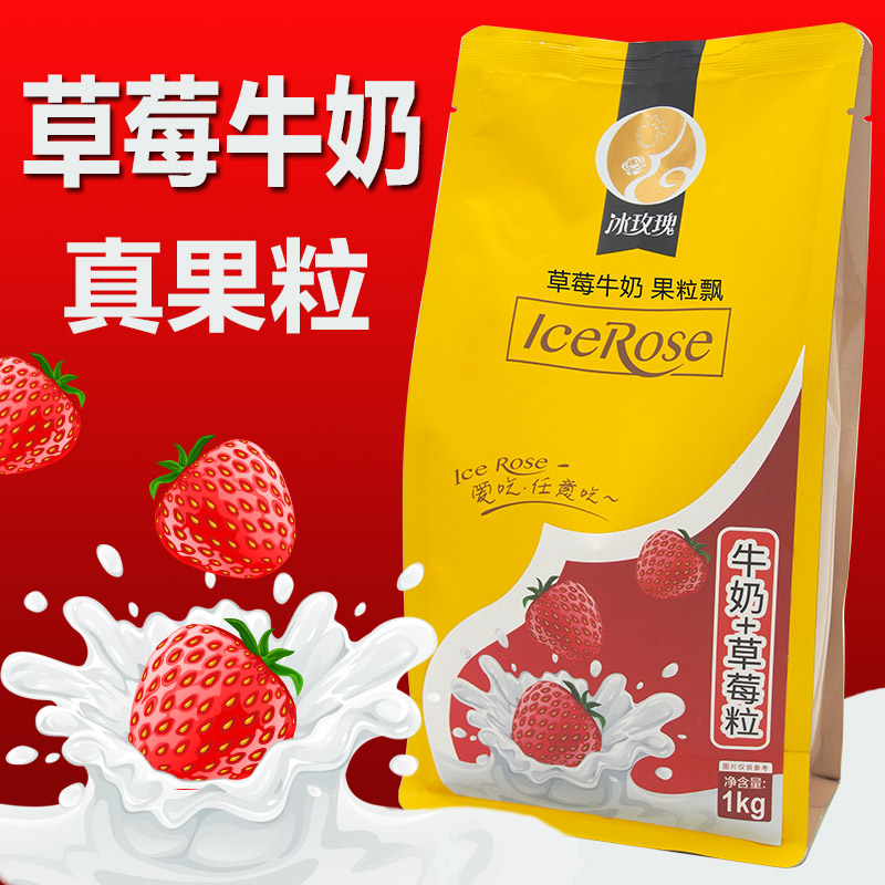 Strawberry milk real fruit grain 1kg milk tea shop new product beverage shop winter hot drink raw material mango yellow peach packaging