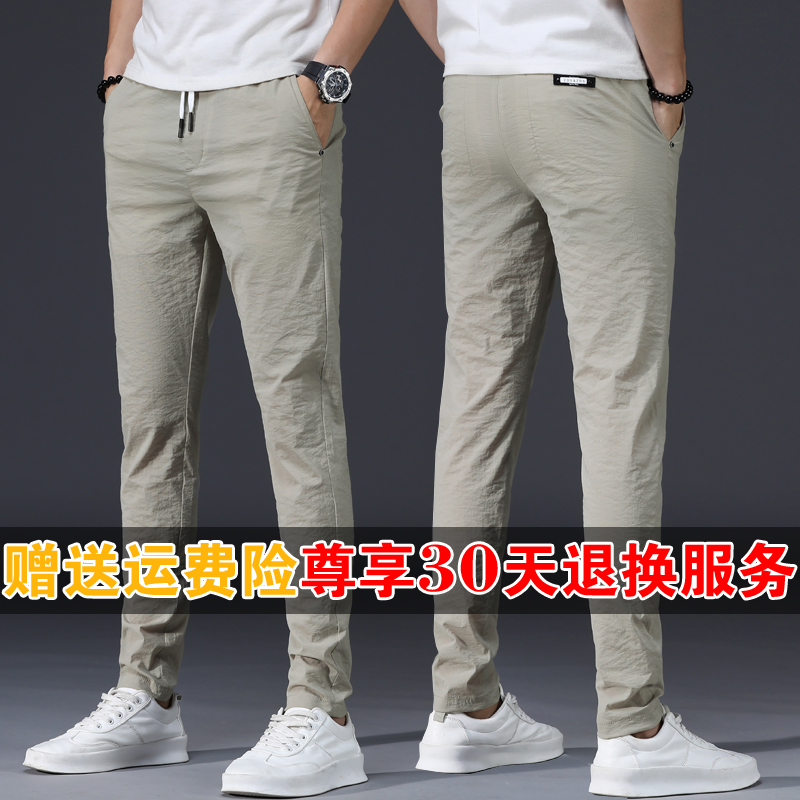 Men's clothing Summer slim fit Ice Silk length pants ultra-thin Summer Dress Breathable Working Clothes Loose Men Casual Pants Spring and Autumn