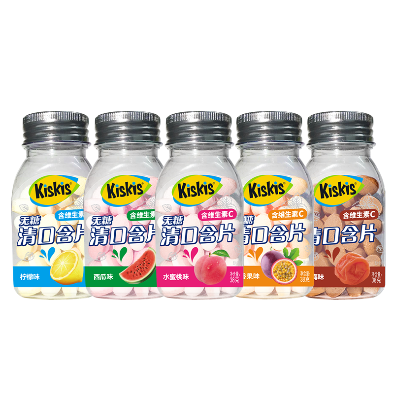 (4 boxes) Cool nourishing KisKis shake-up VCs No sugar Mint Candy Gum kisses Sugar fruit Tablet Bottled