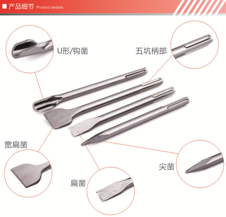 Five Pit Electric Hammer Chisel Electric Pick Tips Chisel Chisel Chisel Chisel U Shaped Chisel Pick Drill 18 * 280-800mm Wall groove drill bit-Taobao