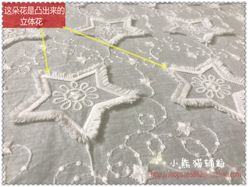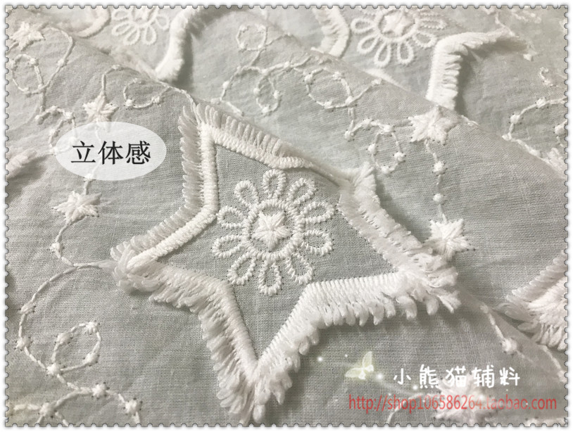 New milk silk five-pointed star embroidery cotton fabric skirt shirt clothes Hanfu diy width 130 cm