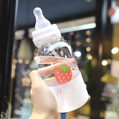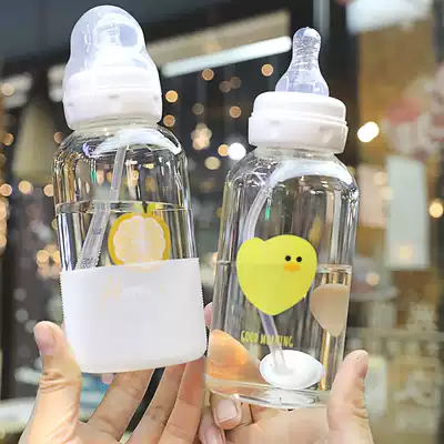 Baby bottle Adult Net red with scale adult bottle glass student cute Cup girl heart straw water Cup