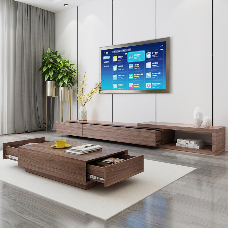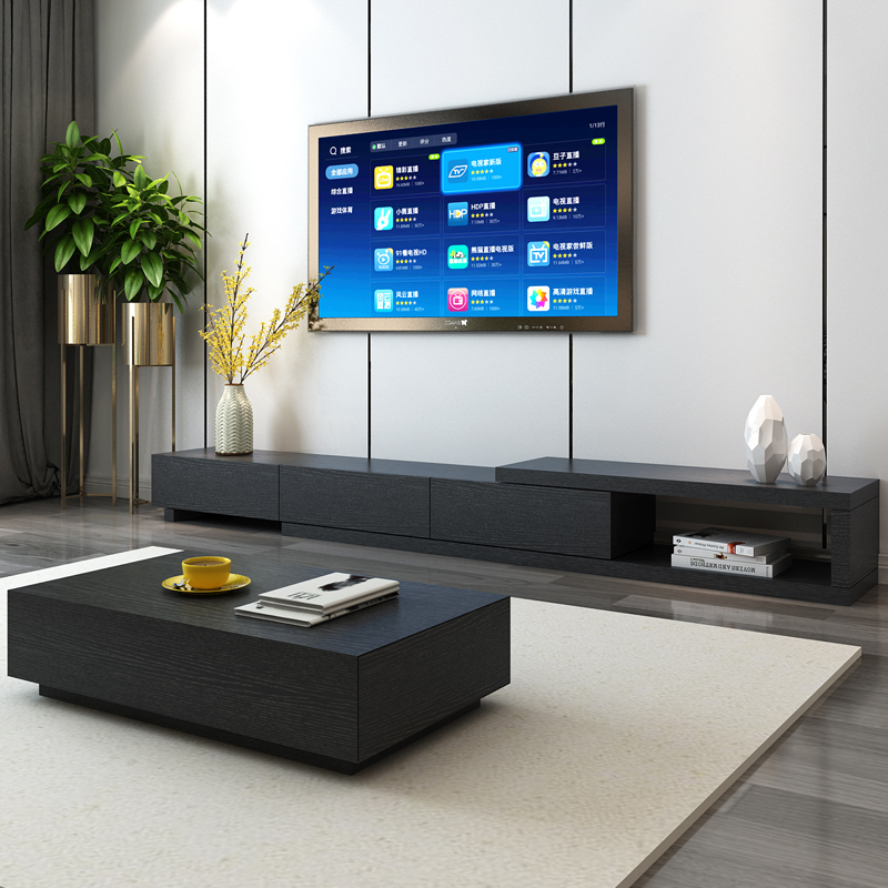Muhao Nordic TV cabinet coffee table set living room wooden black modern minimalist TV low floor cabinet combination customization
