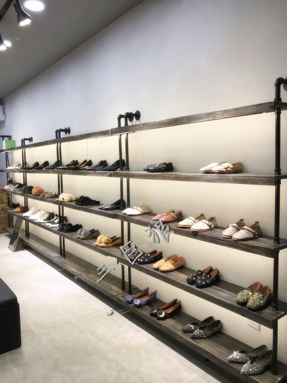 Retro shoe store shoe rack display rack solid wood shoe rack wall shoe rack multi-layer floor-standing shoe rack store bag shoe rack