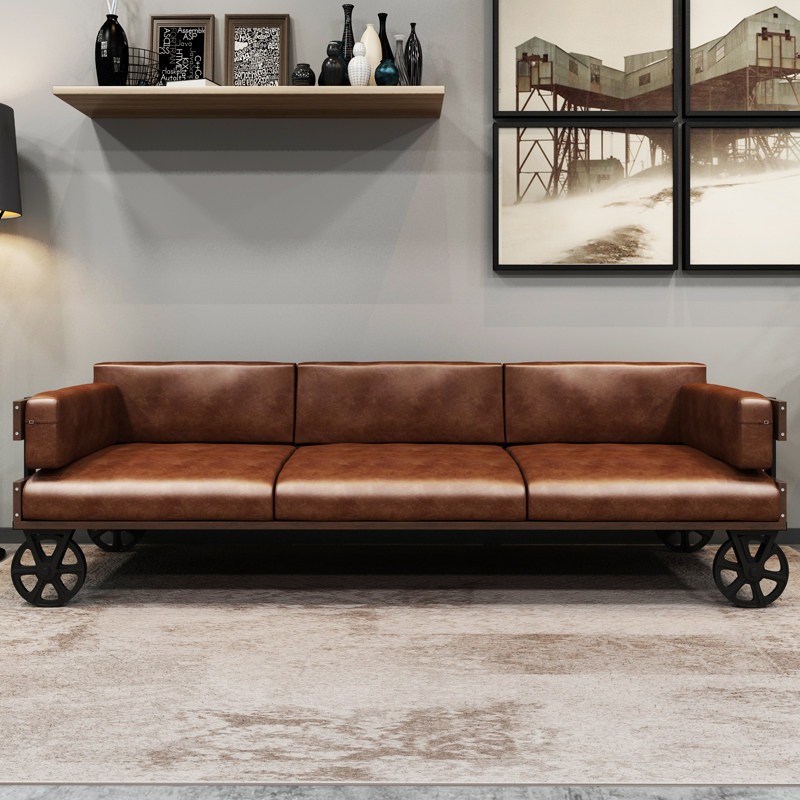 LOFT industrial style retro iron sofa coffee table combination American creative studio office sofa three people