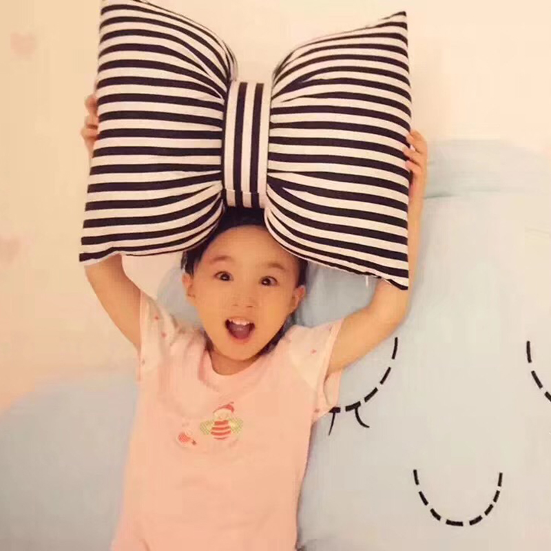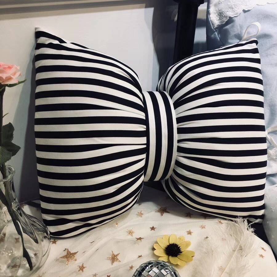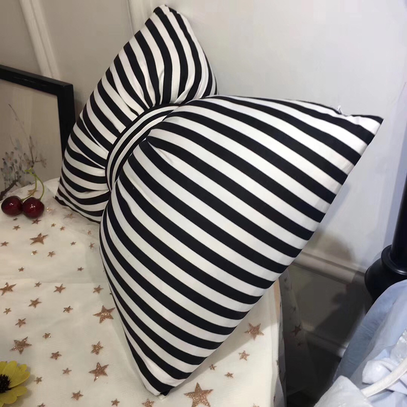 Black pink striped pure cotton bow tie pillow minimalist bed leaning pillow small fresh and cute girl room swing piece