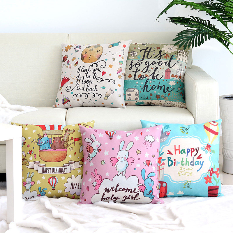 Cartoon Cotton Hemp Holding Pillow Back Cushion Living-room Sofa Backrest Cushion Nordic Car Holding Pillow Waist Close To Holding Pillow Cover Without Core