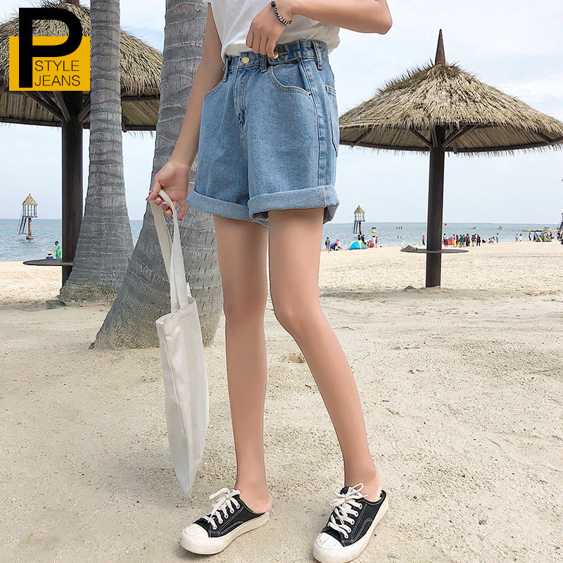 Straight cylinder loose 50% wide leg high waist denim shorts female summer 2022 new outwear tide 50% pants a word thin