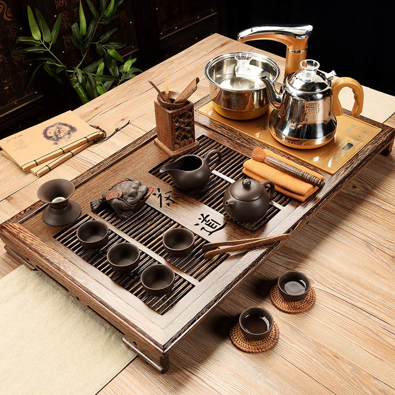 Chicken Wings Solid Wood Tea Tray Home Induction Cookware Integrated Fully Automatic Tea Sea Water Storage Tea Table Whole Set Of Purple Sand Tea Tea Table