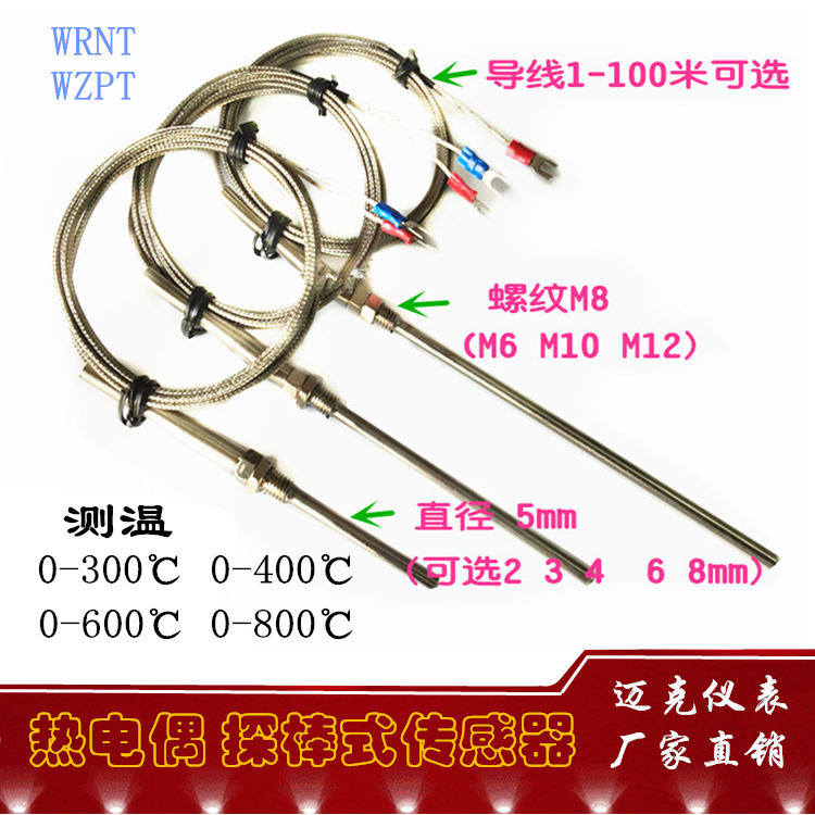 Probe thermocouple temperature sensor imitation imported probe rod M8 thread installation K-type PT100 thermal resistance