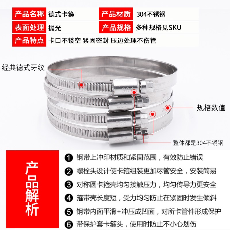High quality 304 De-style stainless steel hoop car special throat hoop tubing hoop rubber pipe water pipe clamp width 9mm