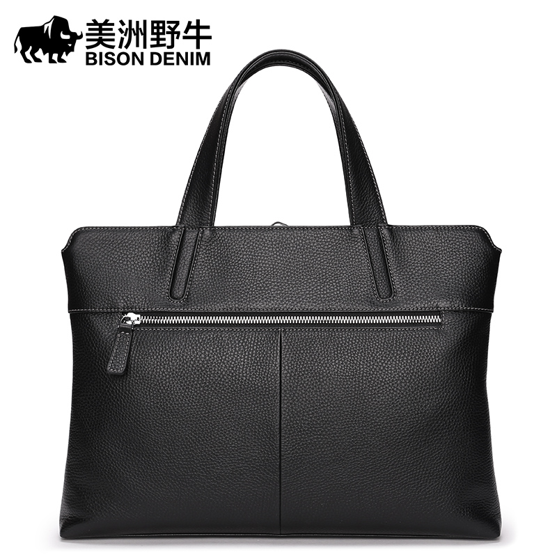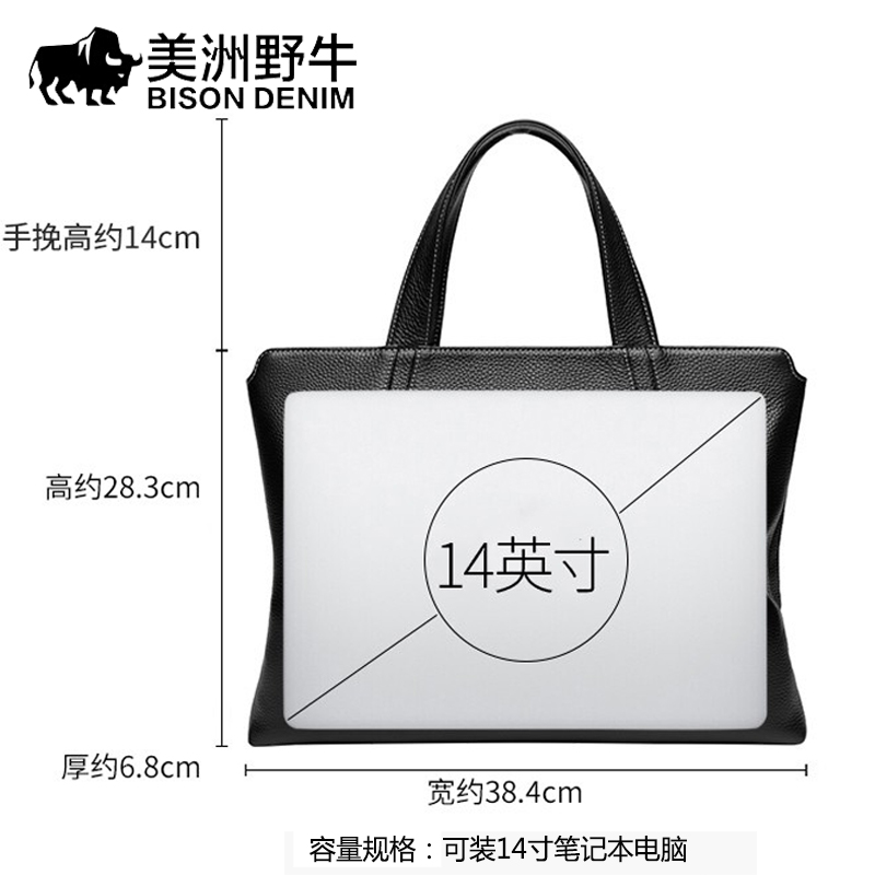 American Bison Leather Men's Bag Tote Bag Top Layer Cowhide Business Large Capacity Laptop Briefcase
