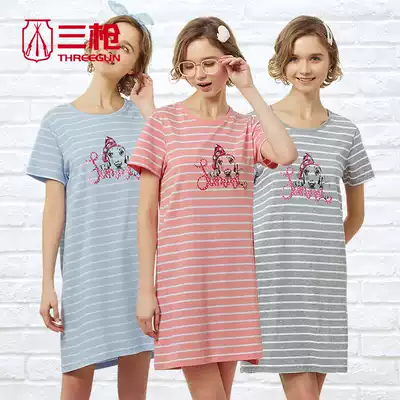 Three-gun night dress women's cotton summer thin striped breathable casual home pajamas round neck cotton outdoor wear home clothes