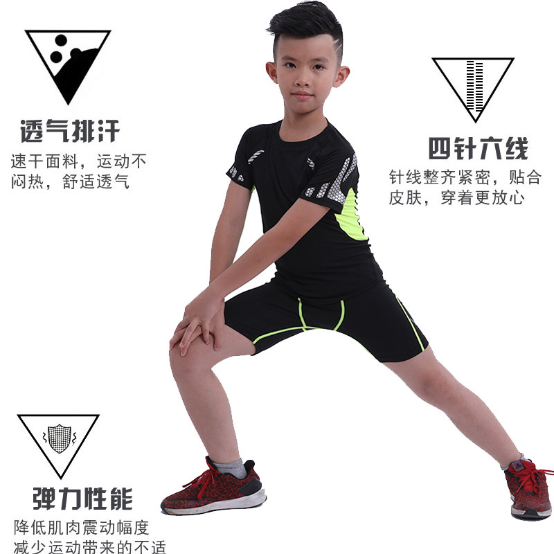 Children Short Sleeve Tight Fit Suit Summer Shorts Sports Fitness Clothing Elastic Basketball Football Training Suit Running Boy