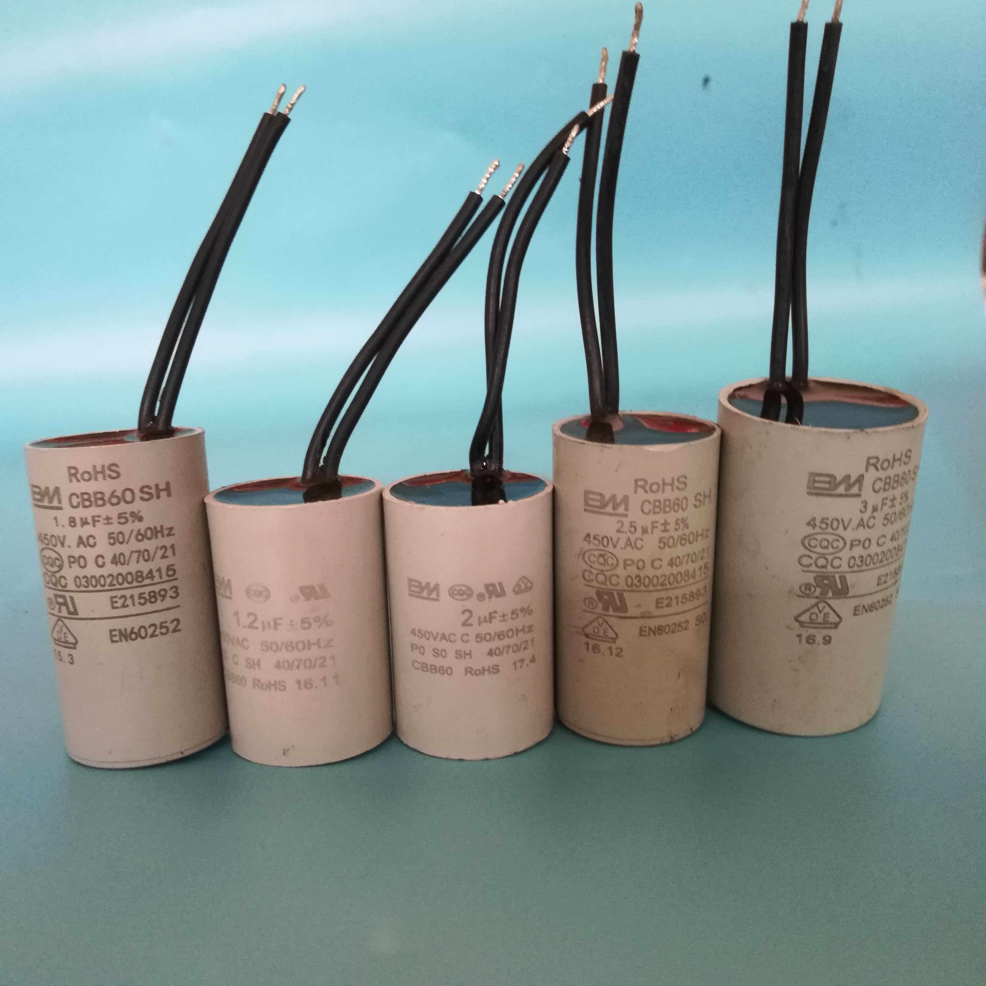 CBB60 small volume cylindrical capacitor 1 2uf1 8uf2uf2 5uf3uf ceiling fan water pump oxygen generator