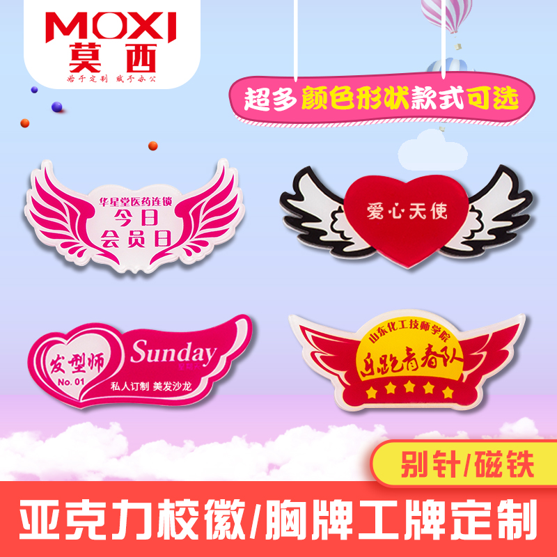 Acrylic Breast Board Custom Kindergarten Plastic School Badge Employee Badge Magnet Replacement Smiley Face Drop plastic pin workout card