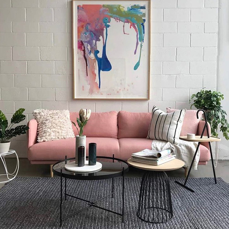 Nordic ins fabric sofa modern designer living room leisure sofa three-seat light luxury Japanese-style log furniture