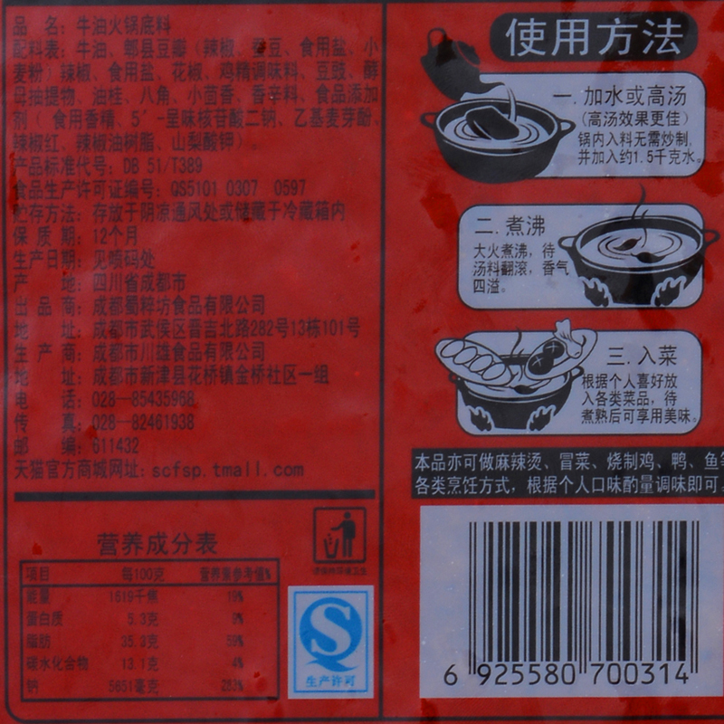 Shu Populace Hotpot Soup Base Chongqing Spicy Hot Pot Stock 450g Niu Oil Chengdu Spicy Hot seasoning Sichuan Special