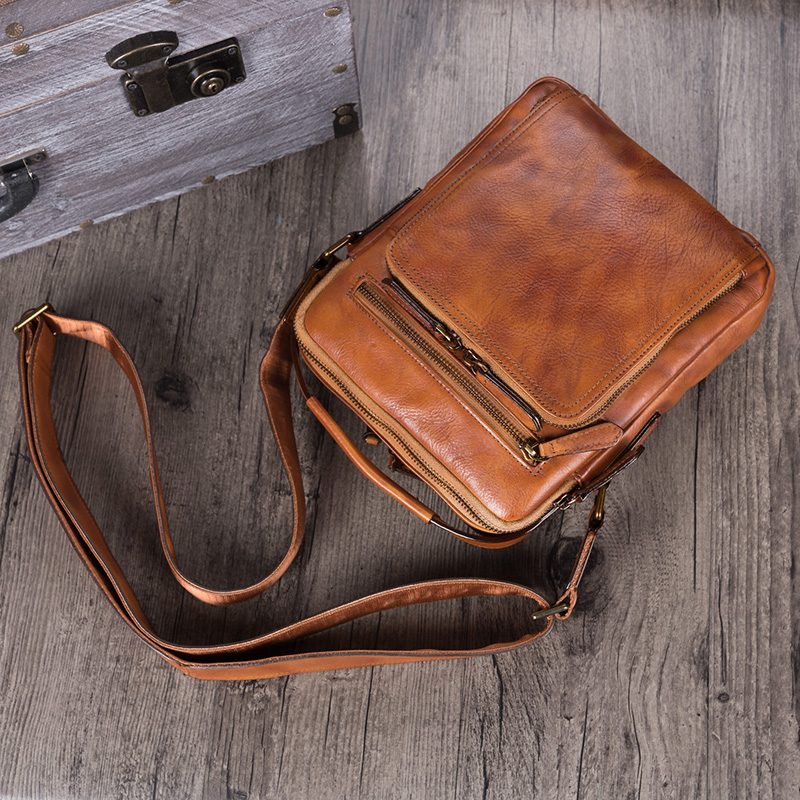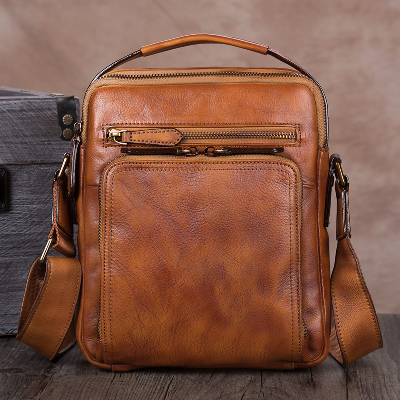 Retro Bag Men's Handmade Leather Bag Men's Leather Genuine Leather Men's Bag Inclined Satchel Bag Men's Single Shoulder Bag Men Handbag Men